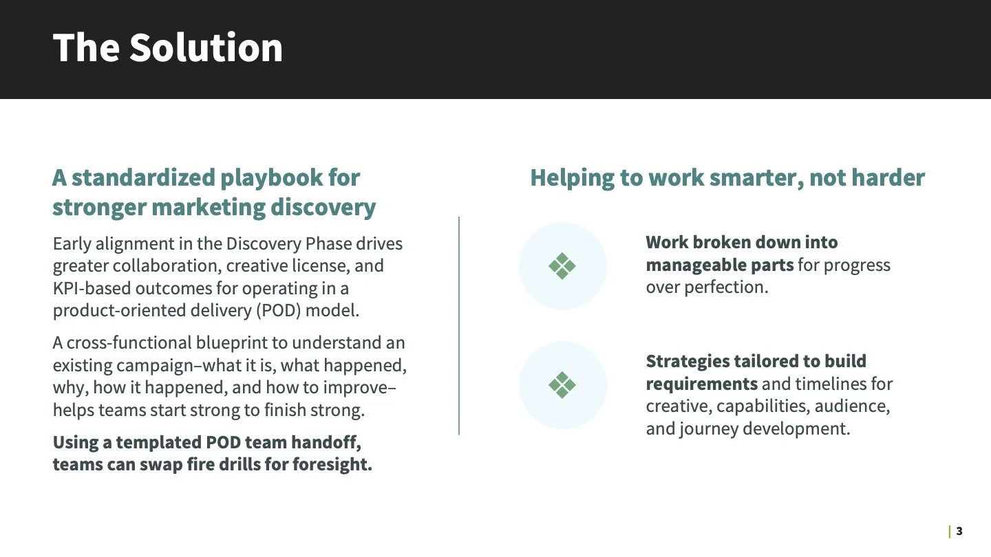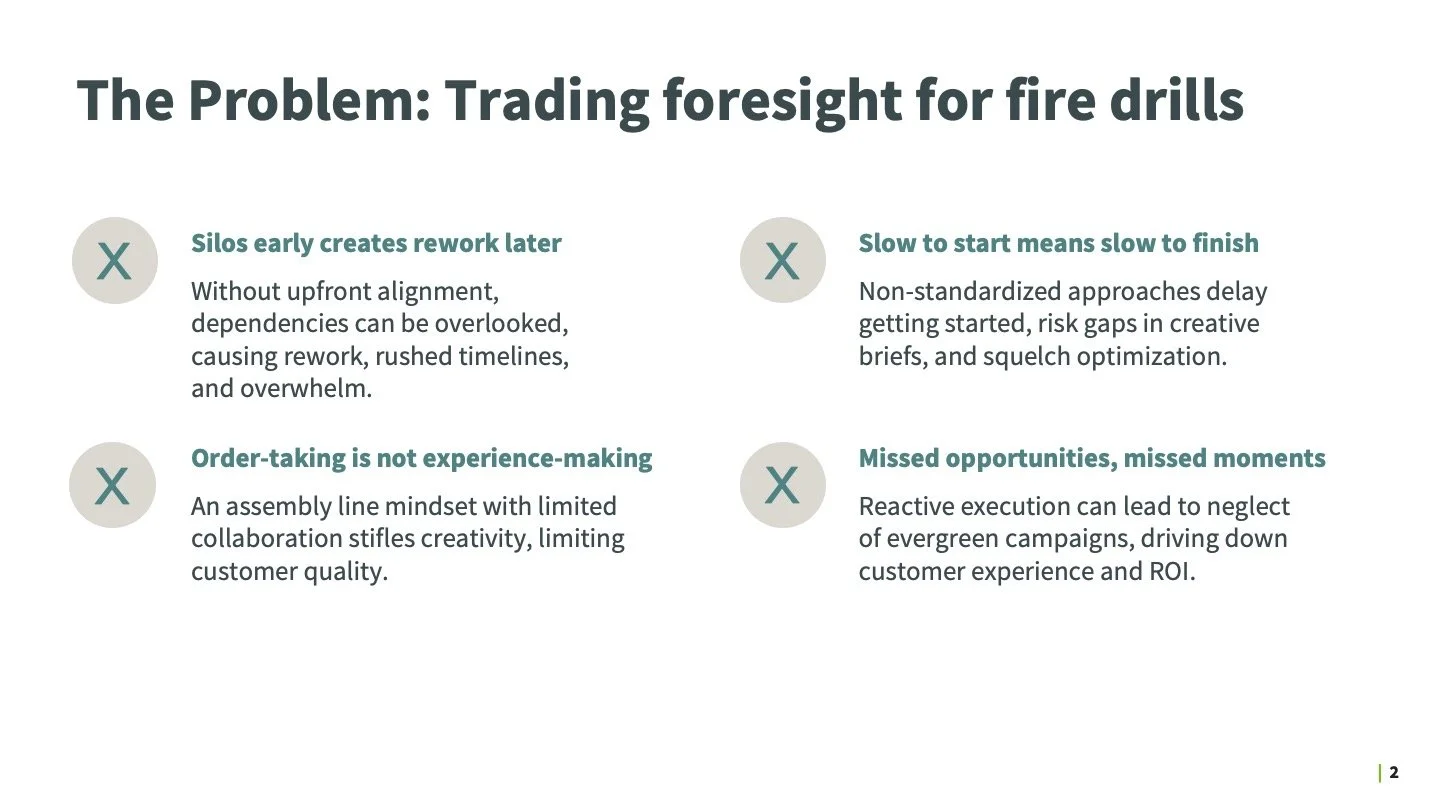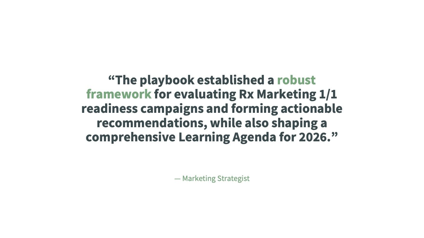 Designed a marketing playbook to strengthen campaign discovery and alignment, defining a cross-functional framework for evaluating performance, generating insights, and improving collaboration across strategy, creative, and operations teams.